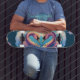 This skateboard deck design features a swan couple standing head-to-head while forming a heart over magical clouds. This is a perfect design for romantic Valentine's day gift! You can customise the default message "i love you"!