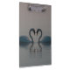 Awesome photograph of two swans swimming head to head creating the illusion of a heart on the water. They are on an early morning misty lake together,