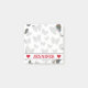 This notes design features a swarm of butterfly representations. The wings of the butterflies feature a pattern of alternating black and coloured stripes. The coloured stripes are coloured various colours. It also features a customisable name near the bottom in red coloured text between two heart shapes, within a white-coloured band. The centre features a circular, lighter-coloured area. [~Z0000159]