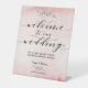 Swash Font Calligraphy Blush Pink Welcome Wedding Pedestal Sign