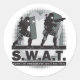 Two heavily armed S.W.A.T. team members with shields get ready for battle! Large S.W.A.T. text and smaller special weapons and tactics text below. Great SWAT team and law enforcement gifts!