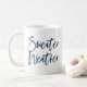Celebrate the holidays and cooler weather with our Sweater Weather coffee mug. The festive coffee mug features "Sweater Weather" in a navy, hand-lettered script font.