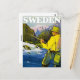 Vintage travel poster promoting fishing and the outdoors in Sweden.