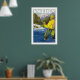 Vintage travel poster for Sweden showing a fisherman in the outdoors.