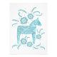 A traditional Swedish Dala Horse folk art style design in teal green and white.