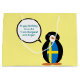 Ms. Penguin loved her vaca to Sweden. She got herself a vest of the blue and yellow Swedish Flag. Here, she says whatever you like when you customise the words in her talk bubble on party items. You can change the background colour to match your personal taste or party theme. The flag of Sweden features a blue background with a yellow Nordic or Scandinavian Cross.