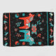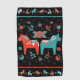 This golf towel has a Swedish folk dala horse design with matching folk art flowers in Sweden's flag colours of teal and red on black background. At the top and bottom are a row of matching smaller dala animals and flowers. You can make the background pattern on this towel smaller or larger.