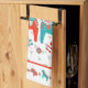 This kitchen towel has a Swedish folk dala horse design with matching folk art flowers in Sweden's flag colours of teal and red on white background. At the top and bottom are a row of matching smaller dala animals and flowers. You can make the background pattern on this kitchen towel smaller or larger.