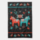 Swedish Folk Dala Horse l Teal and Red Tea Towel