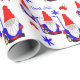 Swedish Gnome Tomten Christmas Wrapping Paper in red, blue and white with words God Jul (Good Christmas). Change that text with the Personalize Button. Features the traditional folklore gnome seen throughout history and most particularly in Selma Lagerlof's The Adventures of Nils. More international offerings in other Scandinavian Languages and other World Languages at zazzle.com/windydesign