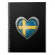 This patriotic design features the flag of Sweden inside of a heart shape. The flag is covered with a light rough texture which gives the pattern an aged look with a three dimensional effect. A metallic frame surrounds the flag which has the look of being made of solid steel. This unique Swedish pattern is perfect to show off your love of country.