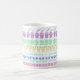 Swedish Midsummer Mug with folk art chicken birds, green and yellow trees, pink flowers and cute little summerhouses (landstalle) with chimneys. It's still cold in Sweden in the middle of summer sometimes. Even so, June is when the summer solstice is celebrated all over Sweden with flowers and dancing around the maypole. Fun! Original Art by WindyDesign inspired by traditional Scandinavian folk art, which often includes primitive grid style illustrations based on nature. Midsommar.