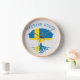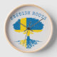 Celebrate your heritage with this stylish wall clock featuring a tree with roots silhouette with the flag of Sweden fill and "Swedish Roots" curved top text on light grey background.
