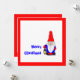 Whimsical illustration of the Swedish Tomten, in red and blue, carrying a black lantern with a warm yellow light. Known as Nisse, or different names in the varioius parts of the Scandinavian region. He is a blessing and a mischief-maker. Treat him well and he may help you with your chores around the farm, treat him poorly and he may tie together the tails of the cows in your barn. WindyDesign makes cards in many languages and sells them at Zazzle.
