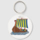 Blue and Yellow sails fly above this viking vessel. Shields adorn the side. Sea monster serves at the helm.
