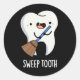 Sweep Tooth Funny Dental Pun Dark BG Classic Round Sticker