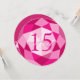 Round Sweet 15 Quinceañera Birthday party invitations. Girly girl Mexican sweet fifteen party design with pink diamond precious gemstones. Fuchsia pink colour with elegant script typography. Luxurious template with faceted gem stones. Pretty cristal facet jewel design. Can also be seen as beautiful rare pink ruby, spinel, sapphire or tourmaline. Luxury fifteenth / 15th Birthday party invites for teen. Vibrant pink colours. Also nice for sweet 16 party.