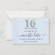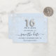 A girly and trendy Save the Date card for a Sweet 16, 16th birthday party. A baby blue background decorated with faux glitter dust. Personalise and add a date and name/age. The text: Save the Date is written with a large trendy hand lettered style script. Number 16 with a balloon style font.