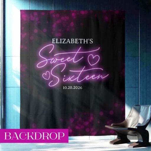 The "Sweet 16 Bday Hot Pink Neon Glow Backdrop" is a stylish and eye-catching decoration that is perfect for a Sweet 16 celebration. This backdrop showcases a vibrant hot pink neon glow design with dark accents, creating a modern and festive atmosphere. It is designed by CaMiDesigns. For orders, shipping, product information, and further assistance, please contact Zazzle Customer Care directly.