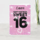 Sweet 16 Happy Birthday Card. Glitter photographic effect only (not actual glitter) . Can be personalised with the name. Baby pink c