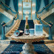Versatile pattern with modern teal blue glitter falling on the side of a teal blue gradient background.