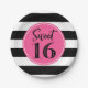 Sweet 16 Birthday Party Pink Black White Stripes Paper Plate