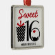 Add the first name of the special girl celebrating her milestone sixteenth birthday to create a lasting memento. Cute graphics of a polkadot wrapping paper gift with a red bow and a sweet treat cupcake iced with white vanilla icing and a red heart cherry on top add to the easy to red black and red text. Customise the name and date along the bottom as needed. Several other coordinating products available in store.