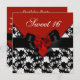 Sweet 16 Birthday Red Black White Floral Bow Invitation