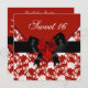 Sweet 16 Birthday Red Black White Floral Bow Invitation
