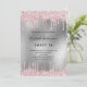 Sweet 16 birthday silver glitter drips metal pink invitation