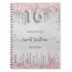 Modern, stylish and glamourous for a girl's Sweet 16, 16th birthday party. A faux silver looking background, decorated with pink and faux silver glitter dust. Personalise and a name and a date. Number 16 is written with a balloon style font, script.