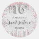 Sweet 16 birthday silver pink glitter script classic round sticker