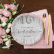 Sweet 16 birthday silver pink metal glitter script paper plate