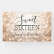 Sweet 16 Birthday Party Welcome Banner w/ Rose Gold Glitter Lights Banner motif.