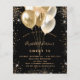 For an elegant Sweet 16, 16th birthday party. A stylish black background. Decorated with dark gold glitter, sparkles and balloons. Personalise and add a name, age and party details. The name is written with a hand lettered style script