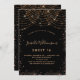 For an elegant Sweet 16, 16th birthday. A stylish black background. Decorated with faux gold glitter and a golden light strings. Personalise and add a name, age and party details. The name is written with a hand lettered style script