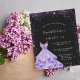 A modern, stylish and glamourous invitation for a Sweet 16, 16th birthday party. A chic black background with purple faux glitter dust and a dress. The name is written with a modern hand lettered style script. Personalise and add your party details.