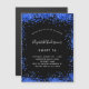 A girly and trendy Sweet 16, 16th birthday party invitation magnet. A chic black background. Decorated with royal blue faux confetti. Personalize and add a name and party details. The name is written with a hand lettered style script.