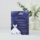 A modern, stylish and glamourous invitation for a Sweet 16, 16th birthday party. A midnight blue background with faux silver glitter dust, a tiara and a dress. The blue colour is uneven. The name is written with a modern hand lettered style script. Personalise and add your party details.