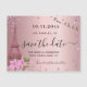 A Save the Date magnet card for a Parish themed Sweet 16, 16th birthday party. A blush pink metallic looking background decorated with the Eiffel tower, flowers and pink hearts. Personalise and add a date and name/age. The text: Save the Date is written with a large trendy hand lettered style script with swashes.