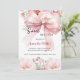 An elegant white background, decorated with a large pink bow and pink watercolored flowers. Personalise and add a name and party details.