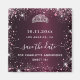 For an elegant Sweet 16, 16th birthday. A burgundy background color. Decorated with pink faux glitter dust, a tiara. Personalize and add a name, age and a date. Save the Date is written with a modern hand lettered style script with swashes.