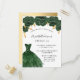 Sweet 16 emerald green gold dress floral invitation postcard