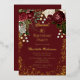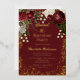 Elegant and classy dark red and burgundy floral roses with seed pearls on a splatter frame "Sweet 16" Birthday Party design by Holiday Hearts Designs. All text is real gold foil and the splatter frame is a combination of gold foil and gold-toned gradient. Seed pearls are faux printed. Burgundy background on front and back.