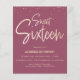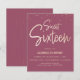 This elegant and festive 4.5" x 5.6" Sweet 16 Party Paper Sheet Invitation features the words "Sweet Sixteen" in a modern, gold (simulated foil) font. The background is pink (eggplant, magenta), but can be changed to any colour of your choice. Party details can be easily customised for your special event. A beautiful, simple, and inexpensive way to invite guests to celebrate a 16th birthday. Envelopes sold separately as an ad-on.