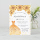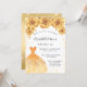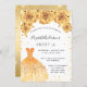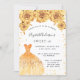 A modern, stylish and glamourous invitation for a Sweet 16, 16th birthday party. A white background on the front with faux gold glitter dust, a dress and roses, florals. The name is written with a modern hand lettered style script. Personalise and add your party details.