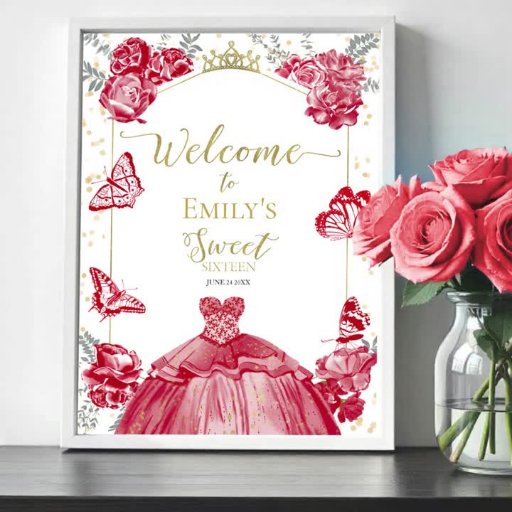 Sweet 16 Invitation Butterfly Red Dress Floral