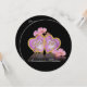 Sweet 16 Birthday party round Invitation pink and black. Pretty pink and gold hearts on black background with orchid flowers. Customisable. Change the background colour and font to suit your taste. This is a new shape offered at Zazzle.com