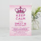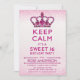 Keep calm, it's a Sweet 16 Birthday Party! Custom girl's birthday invitations with rubies, diamonds, gems and jewels. Pink and purple with a sparkle glitter background. Easy to customise with your own information.