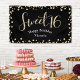 Sweet 16 Modern Black Gold Glitter Girly Birthday Banner
